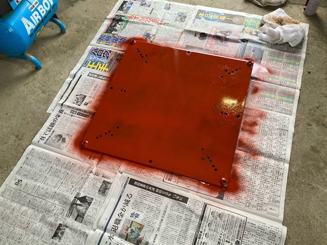 2021/12/12-塗装など…This entry was posted in DIY on 2021年12月12日 by cutsn 店のサインポール(散髪屋さんの前でクルクル回ってるやつ)の土台部分のサビが気になったので、塗ることにしました。 まずはバラし。 30年ぐらい経ってる割には、そんなに酷く無いですね。 スクレーパーとサンドペーパーでサビを落としてから、下地の錆止め塗装。 1回目〜 ムラを消す感じで、もう一回錆止めと塗った後に、黒で塗装。 下地のデコボコが気になりますが、裏側なので、まあ良いか(笑) スッキリしました。 ちょっと手直しした部分もあるので、それはチョコチョコっとスプレーしとこうと思います。 スプレーは楽やけど、ムラなく塗るのは難しいですね〜。 また何か塗装してスキルアップしたいと思います(^^) CM