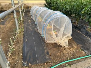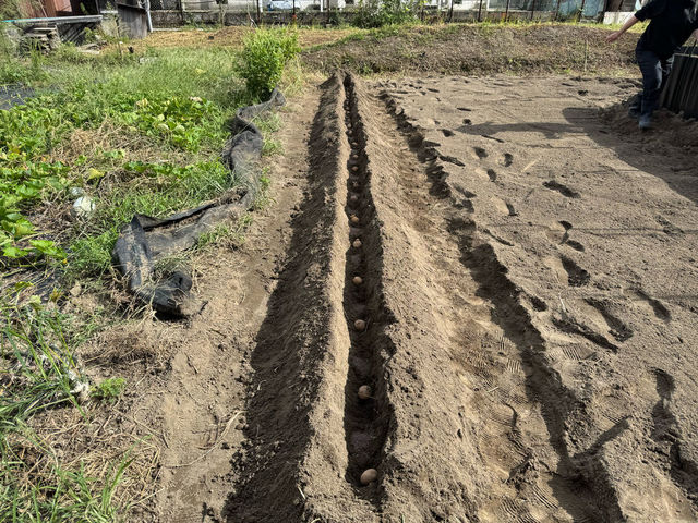 2025/9/21-超高畝など…This entry was posted in 畑 on 2025年9月23日 by cutsn 今年の冬は守口大根を育ててみよう! 守口大根は細長く、上手く育てば1mぐらいになるそうです。 面白そうなので、種をまいてみることに。 1m育つってことは、土の深さが1m要るって事なんで、そのぶん畝を高くします。 波板で壁を作って、そこへ土を盛り盛り。 なかなかの重労働でしたが、なんとか完成! 横にジャガイモも植えました。 今回は1列だけ。 白菜やブロッコリーなども植えて、徐々に冬モードへ切り替えです。
