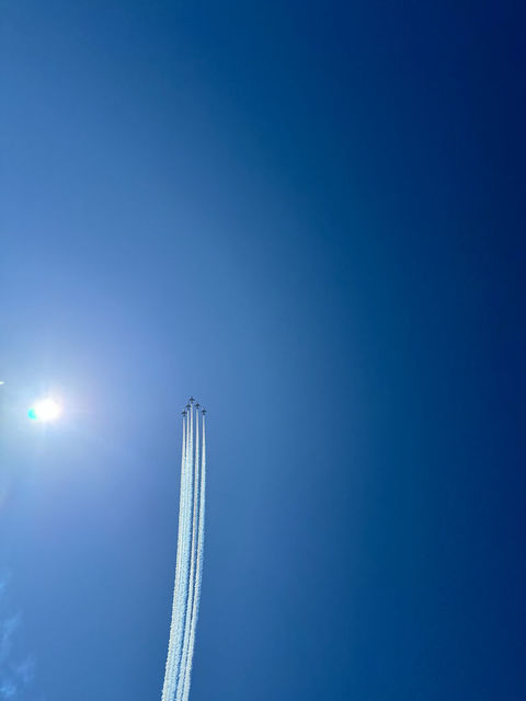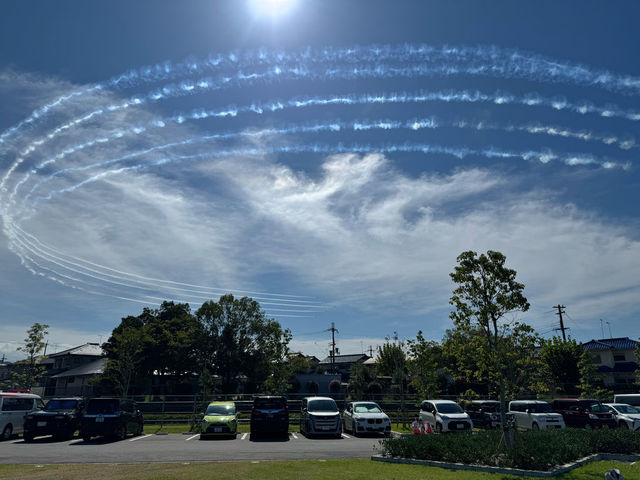 2025/10/8-ブルーインパルスなど…This entry was posted in 未分類 on 2025年10月9日 by cutsn 国スポ閉会式にブルーインパルス来訪! 彦根に来るのは8年ぶりです。 前回よりも短く3分間の飛行って事で、見に行こうかどうしようかって感じでしたが、お客さん居なかったのでチャリで行ってきました(^^) 会場近くの駐車場でスタンバイ。 お城の方から来ました! 1演目って事やったんですが、グイーンと上がってから大きく旋回したので2演目? 大迫力でした。 どうやら、会場以外でも県内何ヶ所かでスモーク出して飛んだようで、かなり沢山の人が見れたようですね(^^)