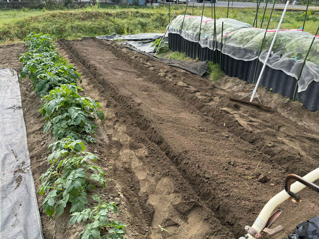 先週の続きで玉ねぎを植えるべく、畝作り。