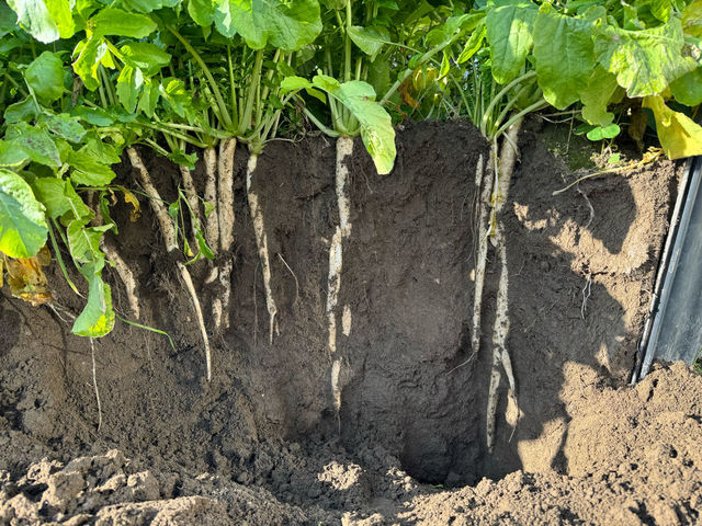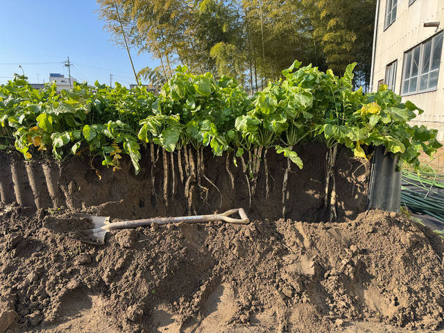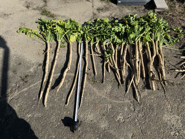 2026/1/18-守口大根など…This entry was posted in 畑 on 2026年1月20日 by cutsn 今シーズン初挑戦の守口大根。 いよいよ収穫です。 長く育つため擁壁を建てて嵩上げしてあります。 擁壁を外して掘ってみると… お〜出来てる出来てる(^^) 長いのやら短いのやら色々ですが、一番長いのは1mありました。 初めてにしては、まずまずでしょうか。 収穫後は土を均して防草シート。 美味しかったら来年もやってみよ〜