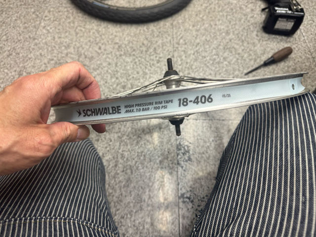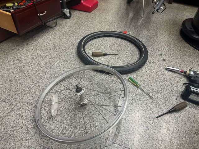 2026/3/13-タイヤ交換など…This entry was posted in DIY on 2026年3月14日 by cutsn 仕事後、自転車の前輪をタイヤ交換。 1月に後輪がヤバい状態で「前輪はまだ大丈夫かな〜」っと後ろだけ交換したら、新品タイヤが良い感じすぎて前輪も変えることにしました(笑) まだ大丈夫っぽいかと思いきや、比べると結構減ってます。 前はチェーンが無いから、簡単に外せて楽ですね。 リムテープも交換。 サクサクっと終了〜! もう20年乗ってますが、まだまだ大丈夫そうです(^^)
